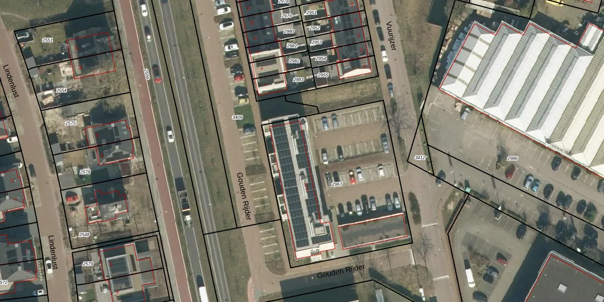 Het perceel waarop Vuurijzer 19 staat heeft een oppervlakte van 1989 m². Dit is een zeer groot perceel. De perceeloppervlakte wordt geregistreerd door het Kadaster. Gedetailleerde informatie over de maten van dit perceel kunt u vinden in het rapport Kadastrale kaart met maatvoering van Vuurijzer 19.