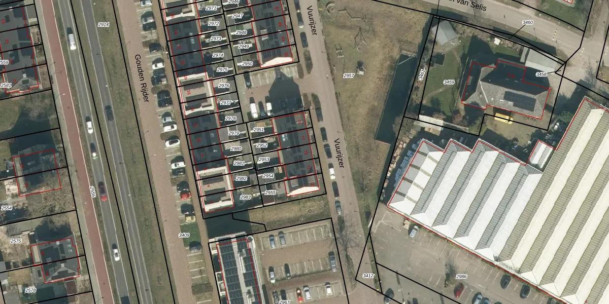 Gebruik de zoekbalk of klik op een perceel voor informatie over de adressen binnen dit perceel.