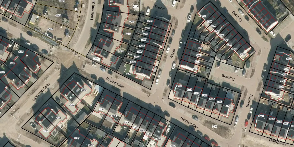 Het perceel waarop Wezel 1 staat heeft een oppervlakte van 256 m². Dit is een middelgroot perceel. De perceeloppervlakte wordt geregistreerd door het Kadaster. Gedetailleerde informatie over de maten van dit perceel kunt u vinden in het rapport Kadastrale kaart met maatvoering van Wezel 1.