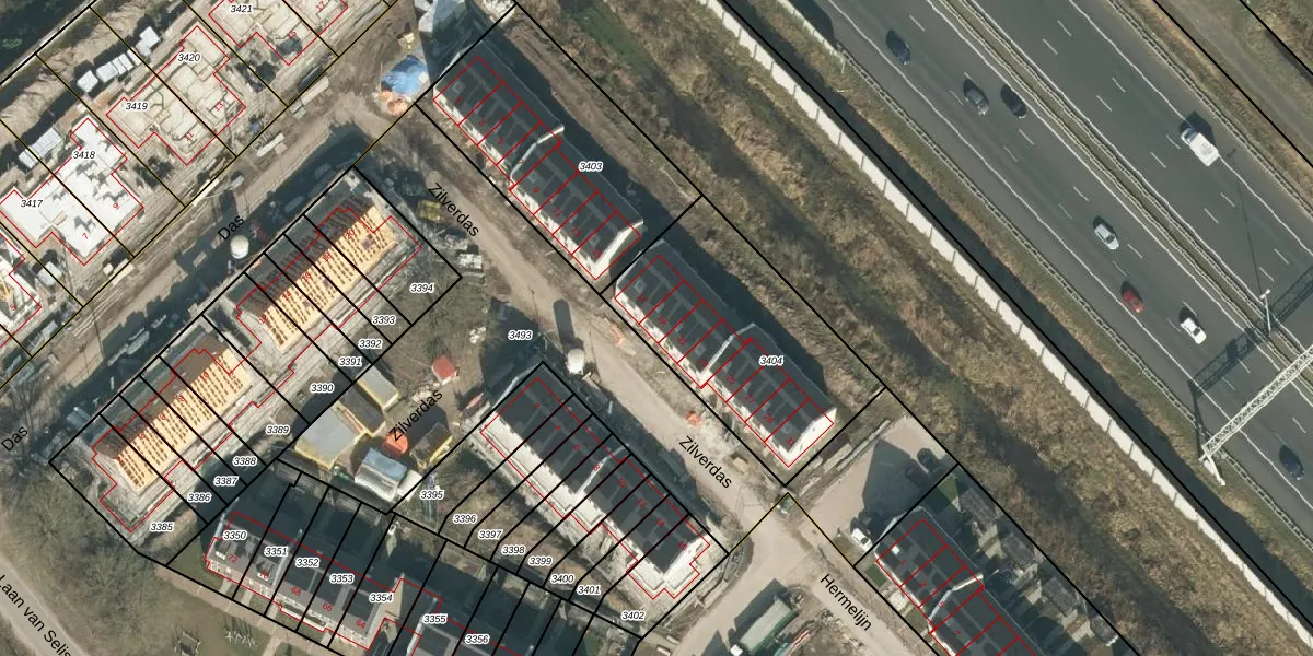 Het perceel waarop Zilverdas 19 staat heeft een oppervlakte van 885 m². Dit is een groot perceel. De perceeloppervlakte wordt geregistreerd door het Kadaster. Gedetailleerde informatie over de maten van dit perceel kunt u vinden in het rapport Kadastrale kaart met maatvoering van Zilverdas 19.