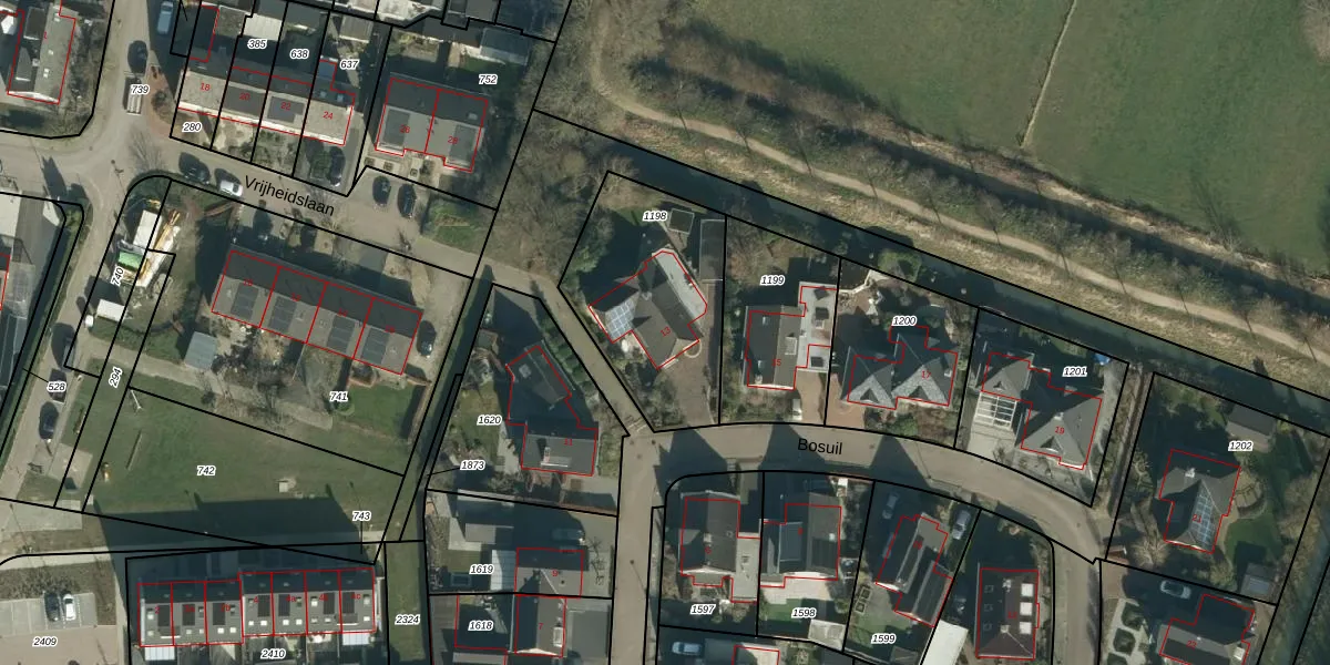 Het perceel waarop Bosuil 13 staat heeft een oppervlakte van 687 m². Dit is een groot perceel. De perceeloppervlakte wordt geregistreerd door het Kadaster. Gedetailleerde informatie over de maten van dit perceel kunt u vinden in het rapport Kadastrale kaart met maatvoering van Bosuil 13.