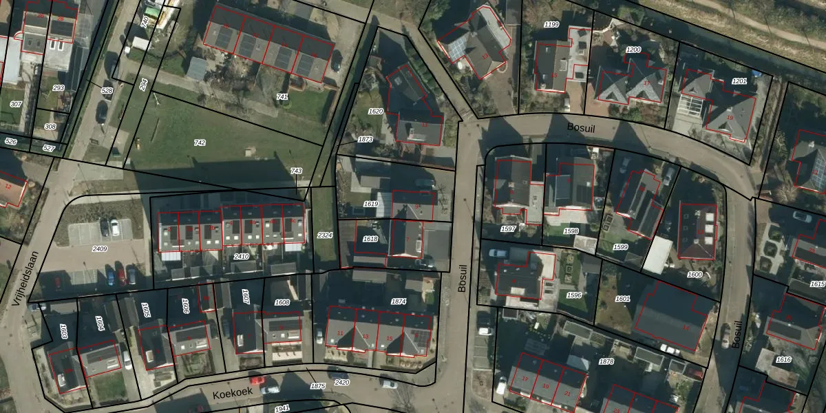 Het perceel waarop Bosuil 9 staat heeft een oppervlakte van 397 m². Dit is een groot perceel. De perceeloppervlakte wordt geregistreerd door het Kadaster. Gedetailleerde informatie over de maten van dit perceel kunt u vinden in het rapport Kadastrale kaart met maatvoering van Bosuil 9.