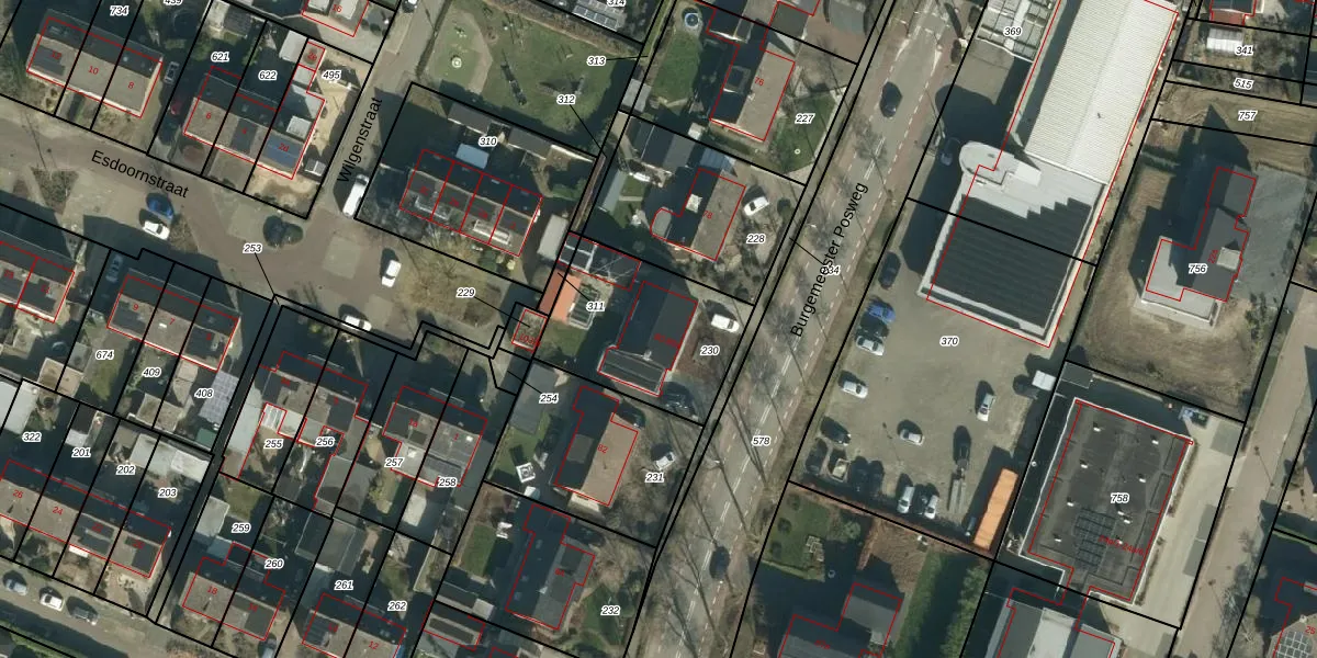 Het perceel waarop Burgemeester Posweg 80 staat heeft een oppervlakte van 563 m². Dit is een groot perceel. De perceeloppervlakte wordt geregistreerd door het Kadaster. Gedetailleerde informatie over de maten van dit perceel kunt u vinden in het rapport Kadastrale kaart met maatvoering van Burgemeester Posweg 80.