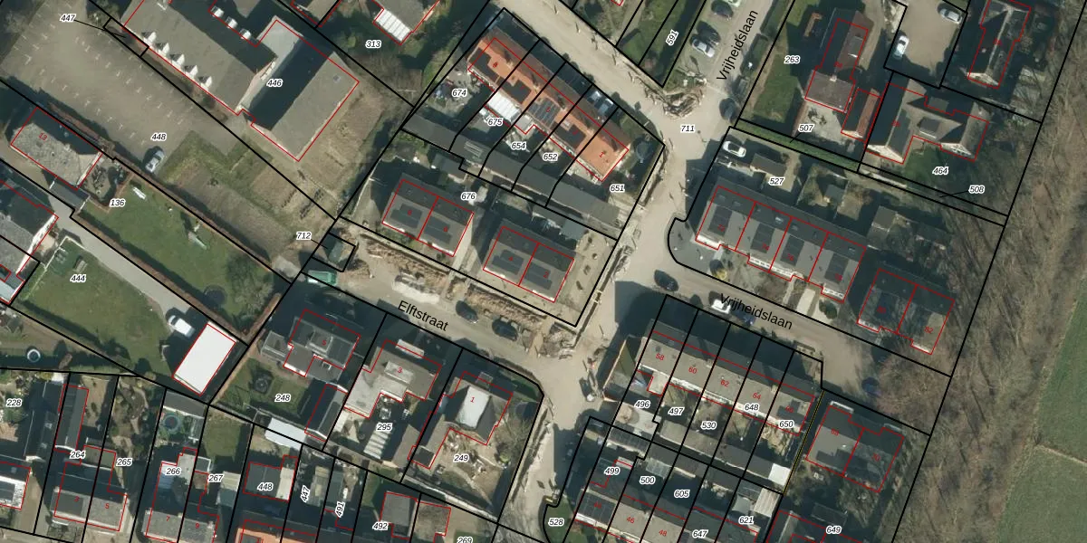 Het perceel waarop Elftstraat 2 staat heeft een oppervlakte van 831 m². Dit is een groot perceel. De perceeloppervlakte wordt geregistreerd door het Kadaster. Gedetailleerde informatie over de maten van dit perceel kunt u vinden in het rapport Kadastrale kaart met maatvoering van Elftstraat 2.