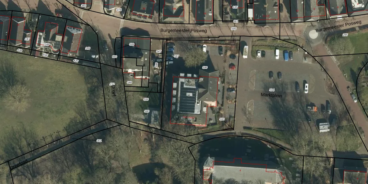 Het perceel waarop Marktplein 2-a-5 staat heeft een oppervlakte van 1995 m². Dit is een zeer groot perceel. De perceeloppervlakte wordt geregistreerd door het Kadaster. Gedetailleerde informatie over de maten van dit perceel kunt u vinden in het rapport Kadastrale kaart met maatvoering van Marktplein 2-a-5.