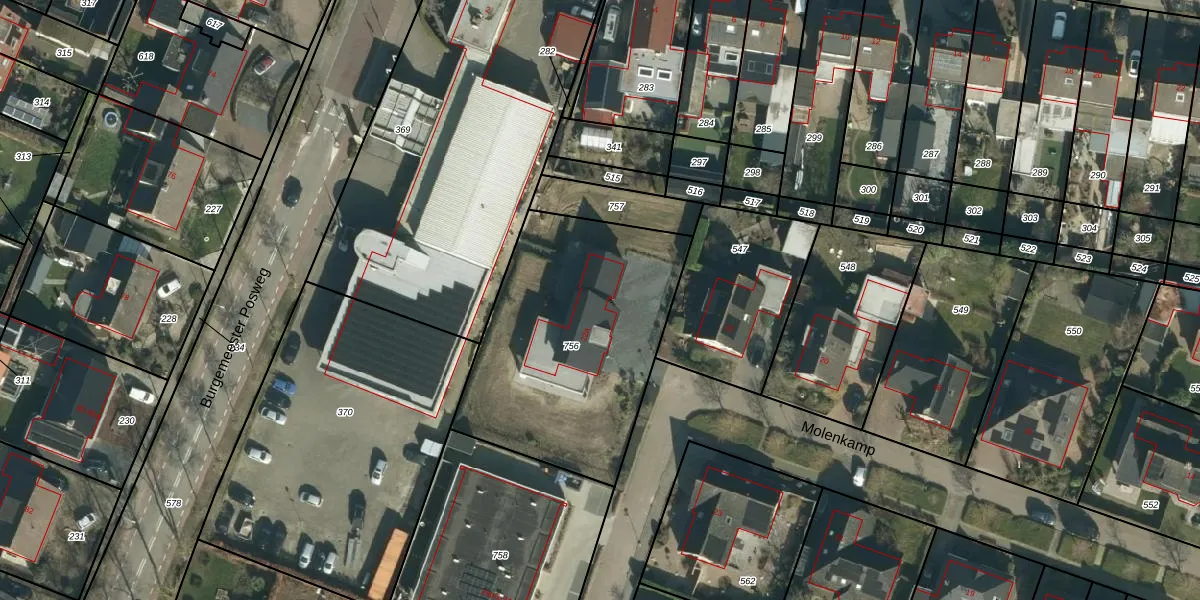 Het perceel waarop Molenkamp 22-a staat heeft een oppervlakte van 1175 m². Dit is een zeer groot perceel. De perceeloppervlakte wordt geregistreerd door het Kadaster. Gedetailleerde informatie over de maten van dit perceel kunt u vinden in het rapport Kadastrale kaart met maatvoering van Molenkamp 22-a.