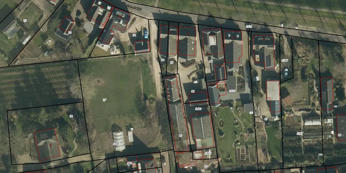 Het perceel waarop Waaldijk 133 staat heeft een oppervlakte van 450 m². Dit is een groot perceel. De perceeloppervlakte wordt geregistreerd door het Kadaster. Gedetailleerde informatie over de maten van dit perceel kunt u vinden in het rapport Kadastrale kaart met maatvoering van Waaldijk 133.