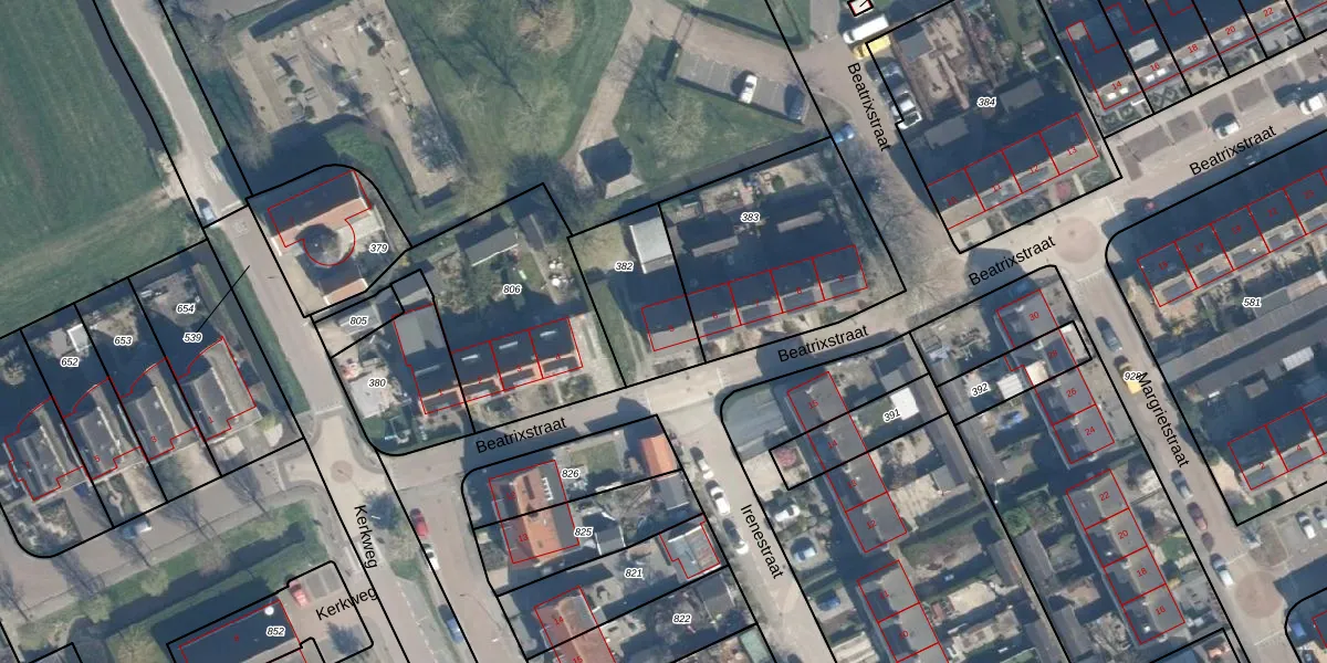 Het perceel waarop Beatrixstraat 5 staat heeft een oppervlakte van 326 m². Dit is een groot perceel. De perceeloppervlakte wordt geregistreerd door het Kadaster. Gedetailleerde informatie over de maten van dit perceel kunt u vinden in het rapport Kadastrale kaart met maatvoering van Beatrixstraat 5.