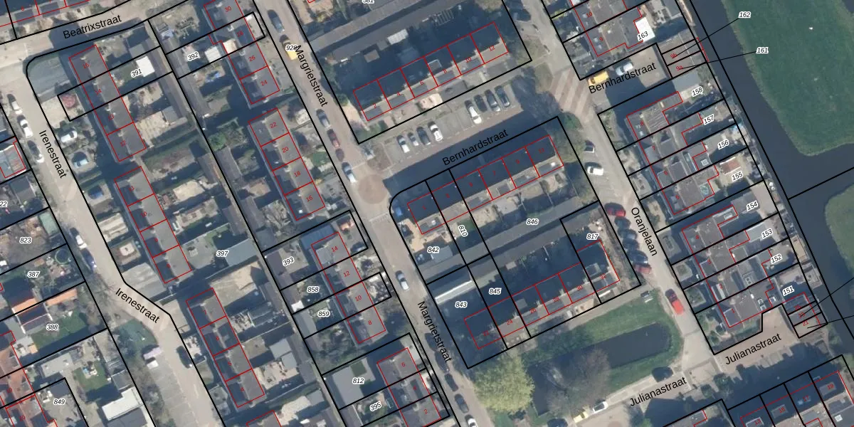 Het perceel waarop Bernhardstraat 1 staat heeft een oppervlakte van 232 m². Dit is een middelgroot perceel. De perceeloppervlakte wordt geregistreerd door het Kadaster. Gedetailleerde informatie over de maten van dit perceel kunt u vinden in het rapport Kadastrale kaart met maatvoering van Bernhardstraat 1.