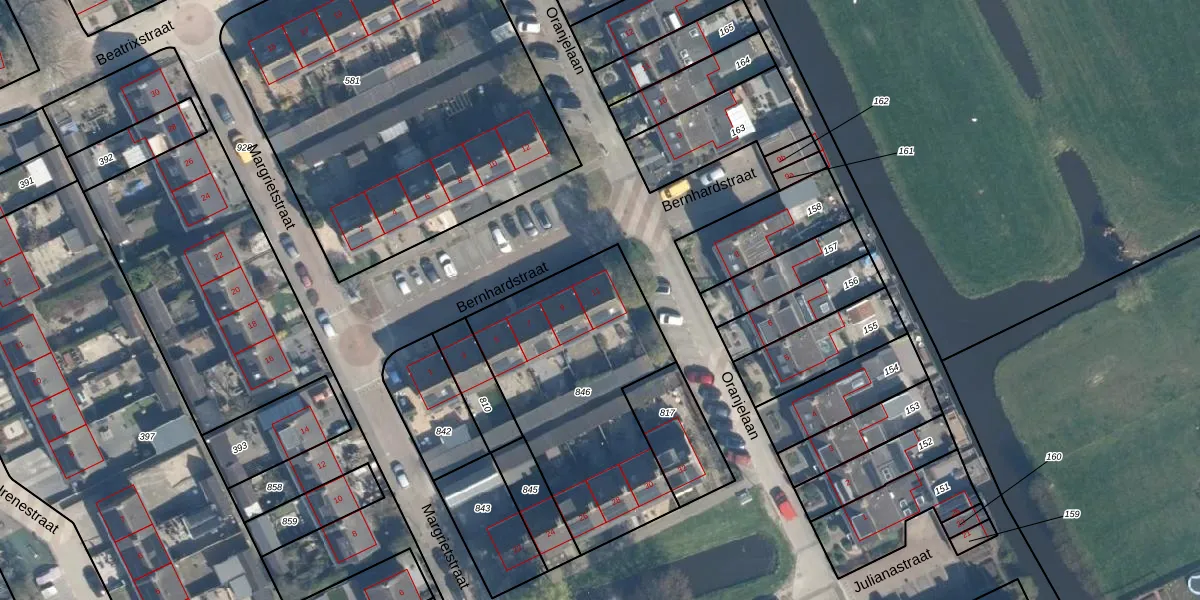 Het perceel waarop Bernhardstraat 11 staat heeft een oppervlakte van 1025 m². Dit is een zeer groot perceel. De perceeloppervlakte wordt geregistreerd door het Kadaster. Gedetailleerde informatie over de maten van dit perceel kunt u vinden in het rapport Kadastrale kaart met maatvoering van Bernhardstraat 11.