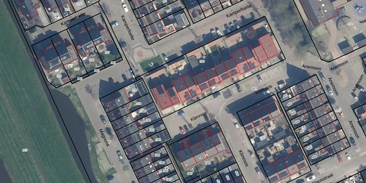Klimroos 19 is gelegen op kadastraal perceel BWK01D793. Deze kadastrale aanduiding is uniek en wordt gebruikt door het Kadaster om eigendomsrechten en andere zakelijke rechten vast te leggen. Het perceel maakt onderdeel uit van de kadastrale gemeente Brandwijk.