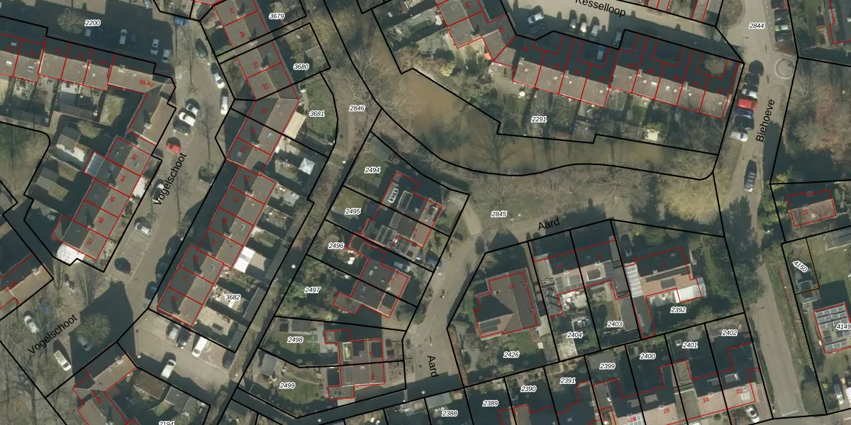 Gebruik de zoekbalk of klik op een perceel voor informatie over de adressen binnen dit perceel.