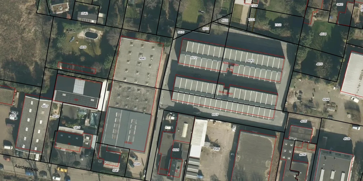 Aardenhoek 16-B18 is gelegen op kadastraal perceel GNK02A5572. Deze kadastrale aanduiding is uniek en wordt gebruikt door het Kadaster om eigendomsrechten en andere zakelijke rechten vast te leggen. Het perceel maakt onderdeel uit van de kadastrale gemeente Ginneken.