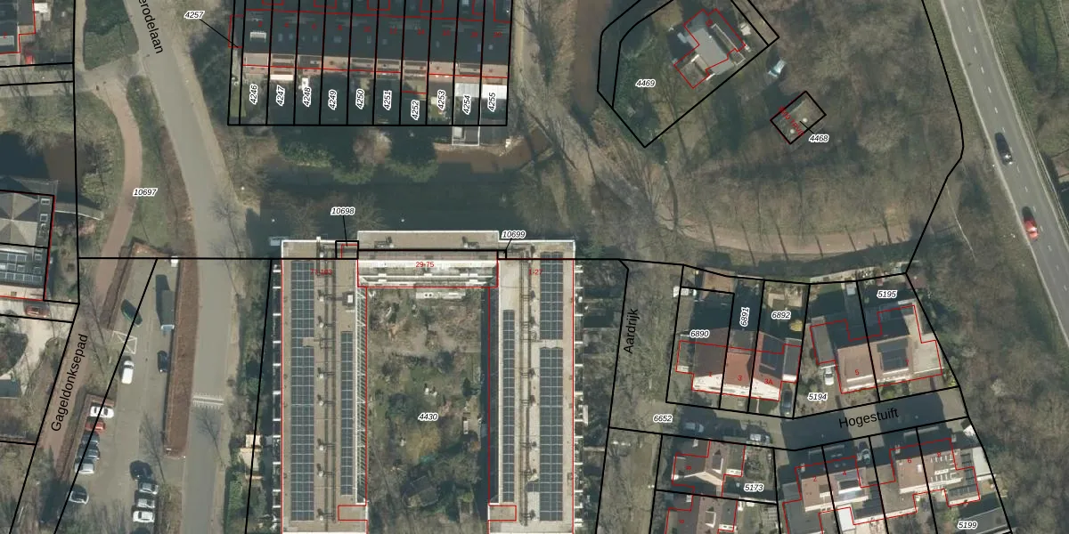 Het perceel waarop Aardrijk 13 staat heeft een oppervlakte van 3653 m². Dit is een zeer groot perceel. De perceeloppervlakte wordt geregistreerd door het Kadaster. Gedetailleerde informatie over de maten van dit perceel kunt u vinden in het rapport Kadastrale kaart met maatvoering van Aardrijk 13.