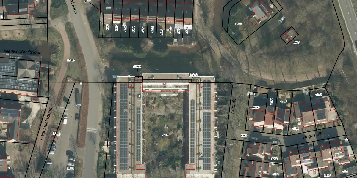 Het perceel waarop Aardrijk 39 staat heeft een oppervlakte van 3653 m². Dit is een zeer groot perceel. De perceeloppervlakte wordt geregistreerd door het Kadaster. Gedetailleerde informatie over de maten van dit perceel kunt u vinden in het rapport Kadastrale kaart met maatvoering van Aardrijk 39.