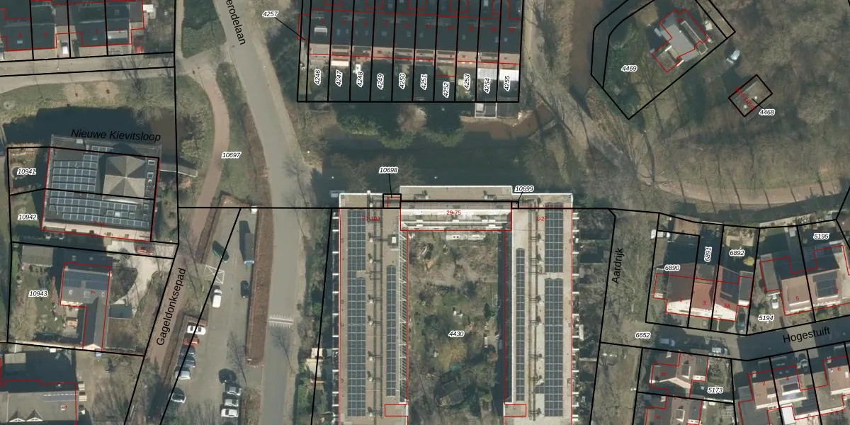 Het perceel waarop Aardrijk 65 staat heeft een oppervlakte van 3653 m². Dit is een zeer groot perceel. De perceeloppervlakte wordt geregistreerd door het Kadaster. Gedetailleerde informatie over de maten van dit perceel kunt u vinden in het rapport Kadastrale kaart met maatvoering van Aardrijk 65.