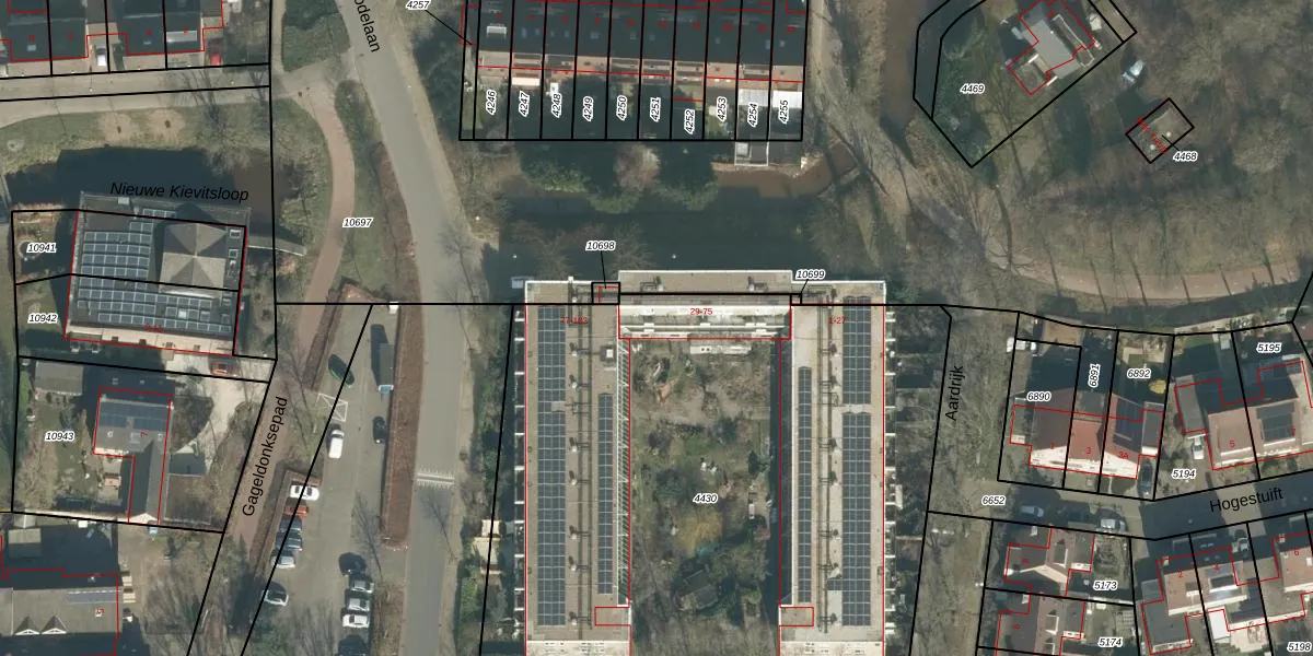Het perceel waarop Aardrijk 67 staat heeft een oppervlakte van 3653 m². Dit is een zeer groot perceel. De perceeloppervlakte wordt geregistreerd door het Kadaster. Gedetailleerde informatie over de maten van dit perceel kunt u vinden in het rapport Kadastrale kaart met maatvoering van Aardrijk 67.