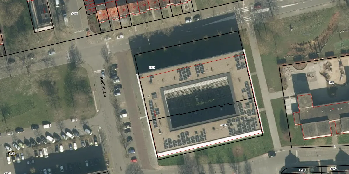 Het perceel waarop Abdijstraat 152 staat heeft een oppervlakte van 2390 m². Dit is een zeer groot perceel. De perceeloppervlakte wordt geregistreerd door het Kadaster. Gedetailleerde informatie over de maten van dit perceel kunt u vinden in het rapport Kadastrale kaart met maatvoering van Abdijstraat 152.