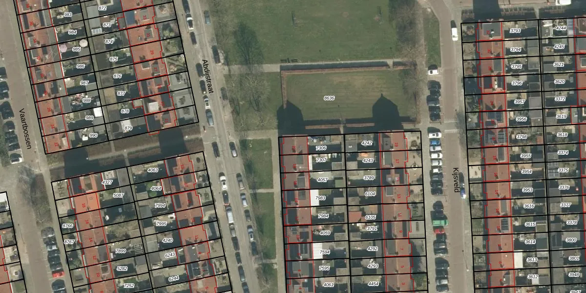 Gebruik de zoekbalk of klik op een perceel voor informatie over de adressen binnen dit perceel.