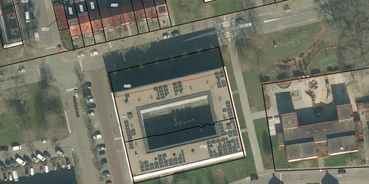 Het perceel waarop Abdijstraat 54 staat heeft een oppervlakte van 2390 m². Dit is een zeer groot perceel. De perceeloppervlakte wordt geregistreerd door het Kadaster. Gedetailleerde informatie over de maten van dit perceel kunt u vinden in het rapport Kadastrale kaart met maatvoering van Abdijstraat 54.
