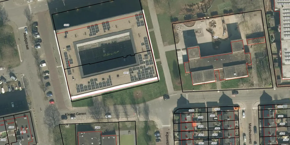Het perceel waarop Abdijstraat 66 staat heeft een oppervlakte van 1350 m². Dit is een zeer groot perceel. De perceeloppervlakte wordt geregistreerd door het Kadaster. Gedetailleerde informatie over de maten van dit perceel kunt u vinden in het rapport Kadastrale kaart met maatvoering van Abdijstraat 66.
