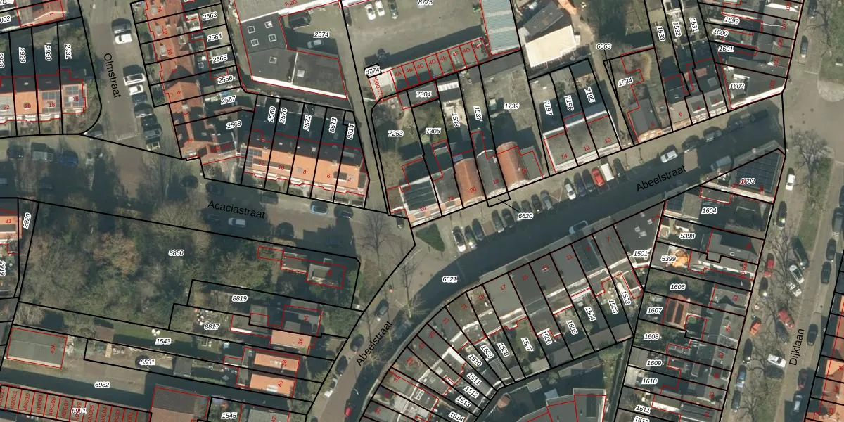 Het perceel waarop Abeelstraat 24 staat heeft een oppervlakte van 317 m². Dit is een groot perceel. De perceeloppervlakte wordt geregistreerd door het Kadaster. Gedetailleerde informatie over de maten van dit perceel kunt u vinden in het rapport Kadastrale kaart met maatvoering van Abeelstraat 24.