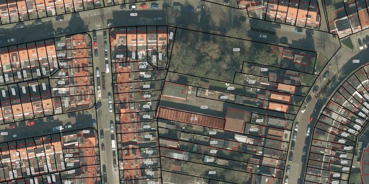 Gebruik de zoekbalk of klik op een perceel voor informatie over de adressen binnen dit perceel.