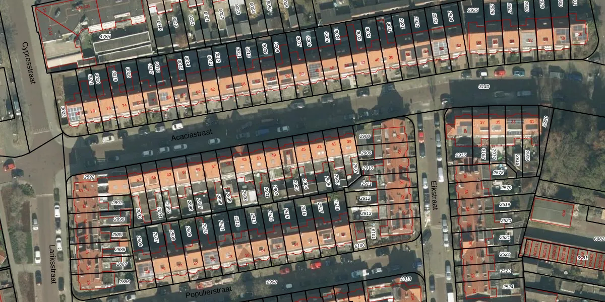 Het perceel waarop Acaciastraat 45 staat heeft een oppervlakte van 104 m². Dit is een middelgroot perceel. De perceeloppervlakte wordt geregistreerd door het Kadaster. Gedetailleerde informatie over de maten van dit perceel kunt u vinden in het rapport Kadastrale kaart met maatvoering van Acaciastraat 45.