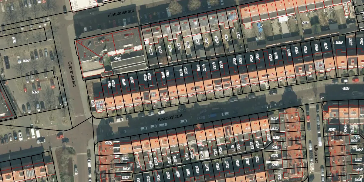 Gebruik de zoekbalk of klik op een perceel voor informatie over de adressen binnen dit perceel.