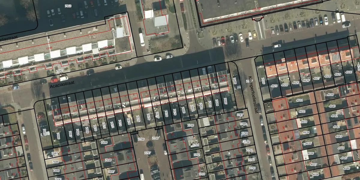 Gebruik de zoekbalk of klik op een perceel voor informatie over de adressen binnen dit perceel.
