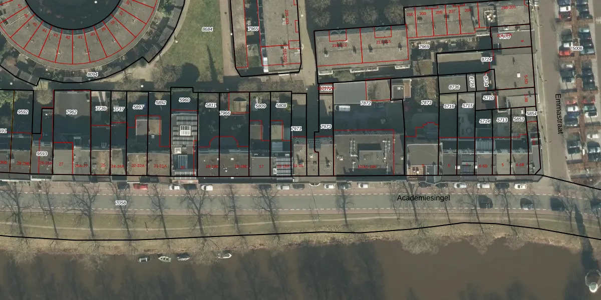 Het perceel waarop Academiesingel 14-A staat heeft een oppervlakte van 136 m². Dit is een middelgroot perceel. De perceeloppervlakte wordt geregistreerd door het Kadaster. Gedetailleerde informatie over de maten van dit perceel kunt u vinden in het rapport Kadastrale kaart met maatvoering van Academiesingel 14-A.