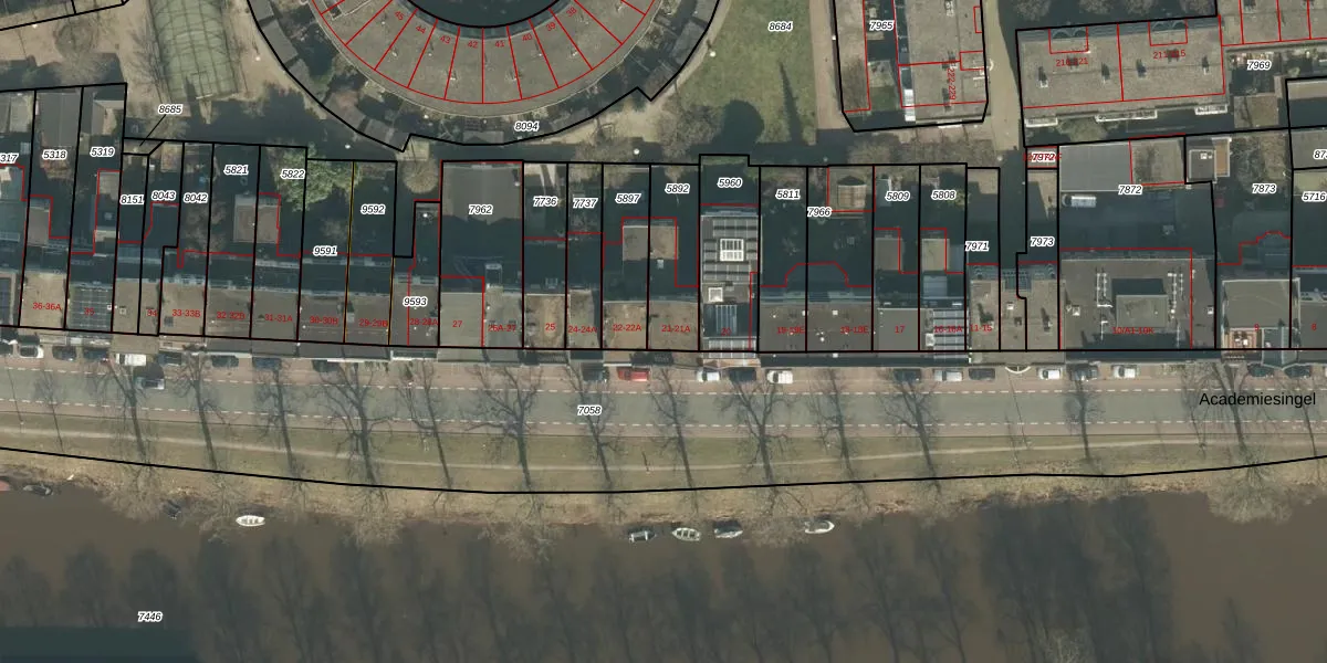 Het perceel waarop Academiesingel 21-A staat heeft een oppervlakte van 210 m². Dit is een middelgroot perceel. De perceeloppervlakte wordt geregistreerd door het Kadaster. Gedetailleerde informatie over de maten van dit perceel kunt u vinden in het rapport Kadastrale kaart met maatvoering van Academiesingel 21-A.