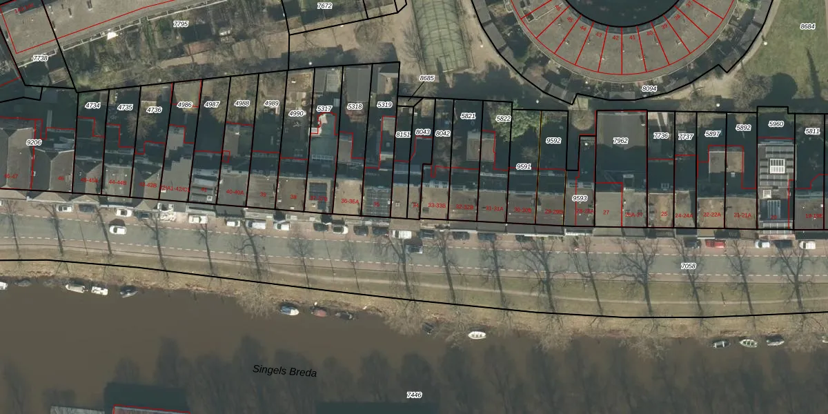 Het perceel waarop het adres ligt is BDA00-B-8043. De afkorting 'BDA00' staat voor kadastrale gemeente Breda. De gemiddelde perceelgrootte in Breda is 1059,93 m². Dit perceel is kleiner: de perceeloppervlakte bedraagt 125 m². Het grootste perceel in de kadastrale gemeente is 44,1 ha. Het kleinste perceel heeft een oppervlakte van 0 m². Er zijn geen andere adressen aanwezig op het perceel. In de Basisregistratie Kadaster (BRK) werden de grenzen van het perceel geregistreerd op 16-10-2006.