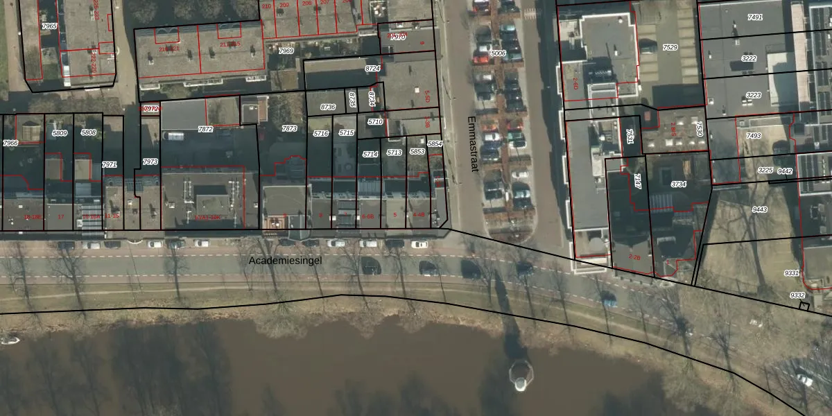 Het perceel waarop Academiesingel 4-B staat heeft een oppervlakte van 132 m². Dit is een middelgroot perceel. De perceeloppervlakte wordt geregistreerd door het Kadaster. Gedetailleerde informatie over de maten van dit perceel kunt u vinden in het rapport Kadastrale kaart met maatvoering van Academiesingel 4-B.
