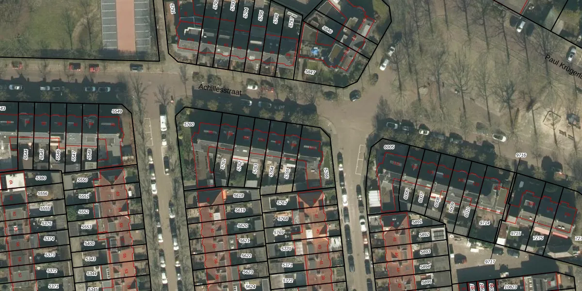 Gebruik de zoekbalk of klik op een perceel voor informatie over de adressen binnen dit perceel.