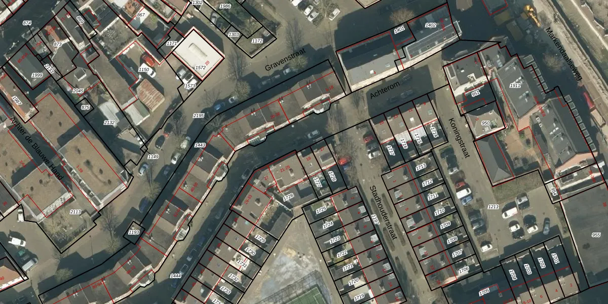 Gebruik de zoekbalk of klik op een perceel voor informatie over de adressen binnen dit perceel.