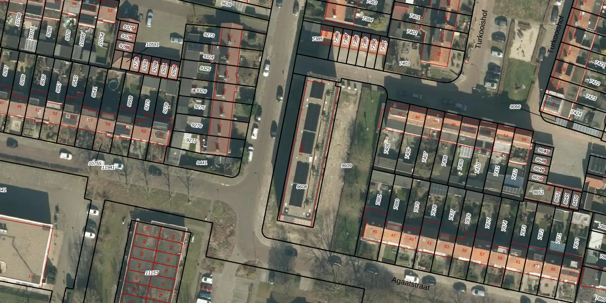 Het perceel waarop Agaatstraat 37-A staat heeft een oppervlakte van 603 m². Dit is een groot perceel. De perceeloppervlakte wordt geregistreerd door het Kadaster. Gedetailleerde informatie over de maten van dit perceel kunt u vinden in het rapport Kadastrale kaart met maatvoering van Agaatstraat 37-A.