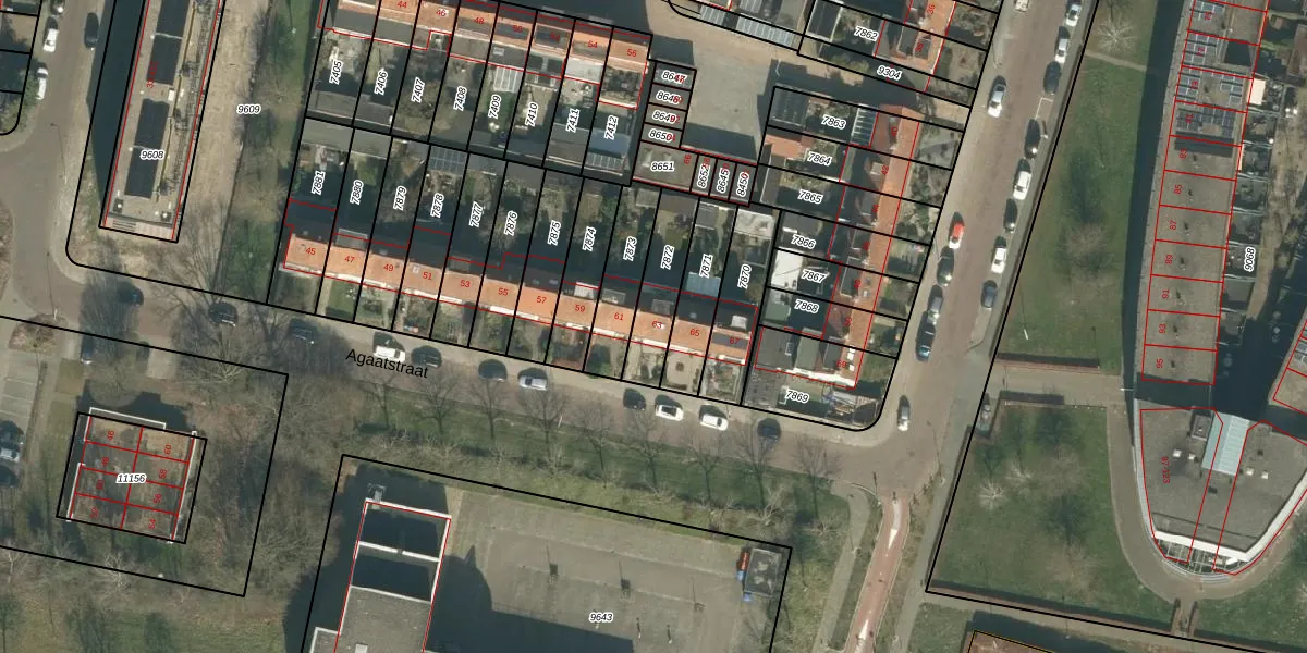 Agaatstraat 63 is gelegen op kadastraal perceel BDA00D7872. Deze kadastrale aanduiding is uniek en wordt gebruikt door het Kadaster om eigendomsrechten en andere zakelijke rechten vast te leggen. Het perceel maakt onderdeel uit van de kadastrale gemeente Breda.