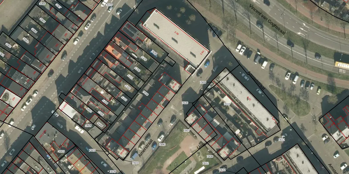 Het perceel waarop Amerstraat 38 staat heeft een oppervlakte van 1838 m². Dit is een zeer groot perceel. De perceeloppervlakte wordt geregistreerd door het Kadaster. Gedetailleerde informatie over de maten van dit perceel kunt u vinden in het rapport Kadastrale kaart met maatvoering van Amerstraat 38.