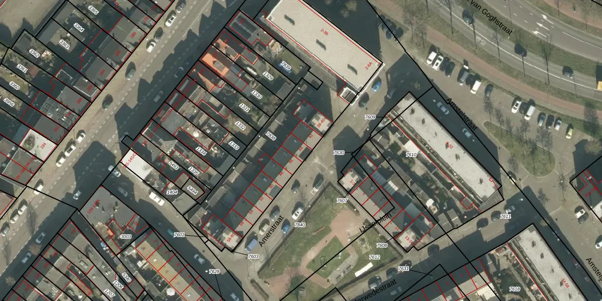 Het perceel waarop Amerstraat 44 staat heeft een oppervlakte van 1838 m². Dit is een zeer groot perceel. De perceeloppervlakte wordt geregistreerd door het Kadaster. Gedetailleerde informatie over de maten van dit perceel kunt u vinden in het rapport Kadastrale kaart met maatvoering van Amerstraat 44.