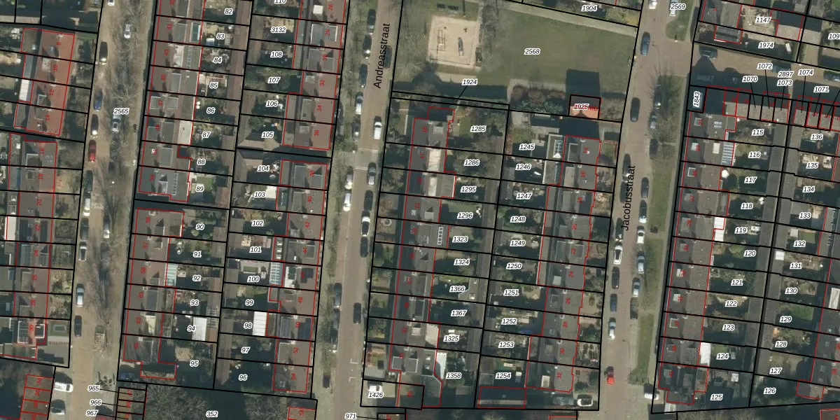 Het perceel waarop Andreasstraat 21 staat heeft een oppervlakte van 170 m². Dit is een middelgroot perceel. De perceeloppervlakte wordt geregistreerd door het Kadaster. Gedetailleerde informatie over de maten van dit perceel kunt u vinden in het rapport Kadastrale kaart met maatvoering van Andreasstraat 21.