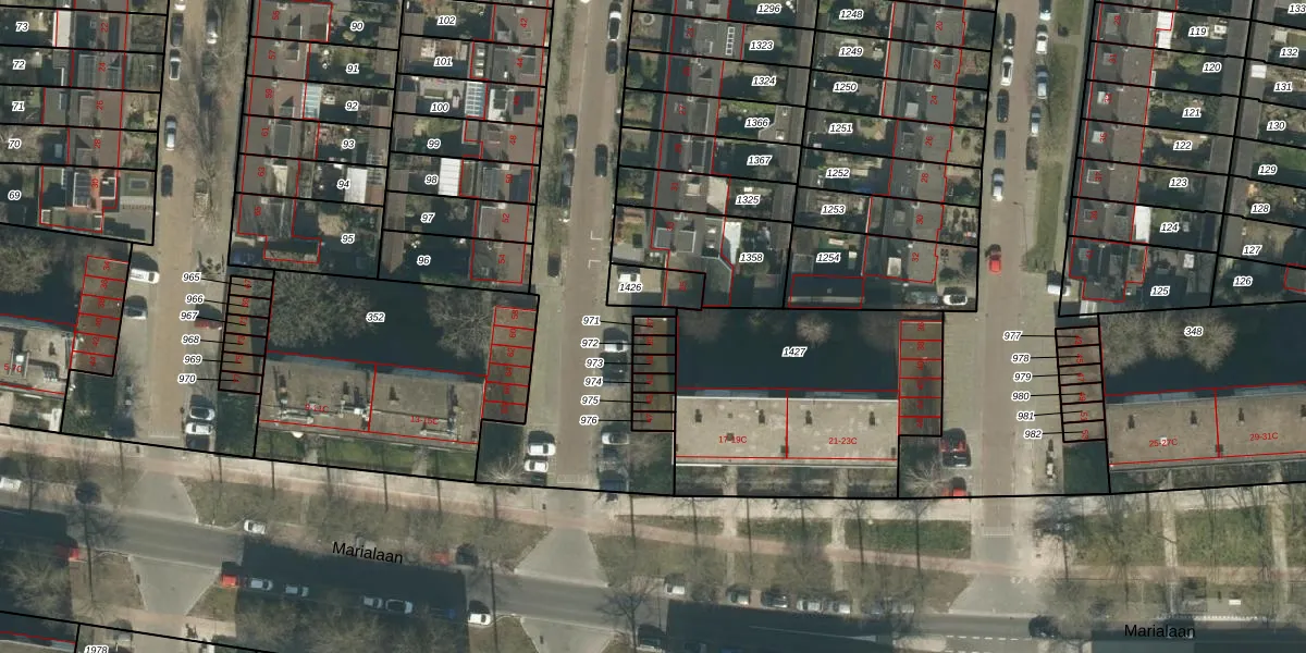 Het perceel waarop Andreasstraat 37 staat heeft een oppervlakte van 20 m². Dit is een klein perceel. De perceeloppervlakte wordt geregistreerd door het Kadaster. Gedetailleerde informatie over de maten van dit perceel kunt u vinden in het rapport Kadastrale kaart met maatvoering van Andreasstraat 37.