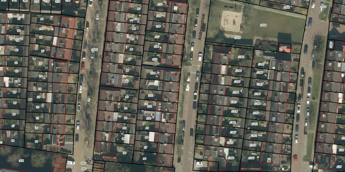 Gebruik de zoekbalk of klik op een perceel voor informatie over de adressen binnen dit perceel.