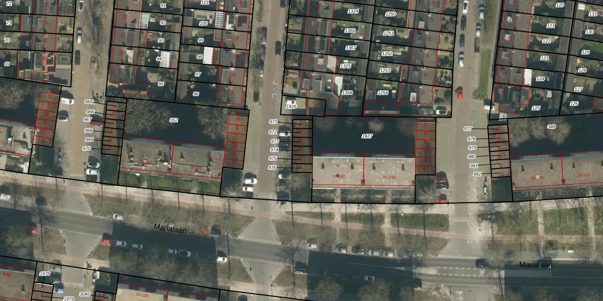 Het perceel waarop Andreasstraat 43 staat heeft een oppervlakte van 19 m². Dit is een klein perceel. De perceeloppervlakte wordt geregistreerd door het Kadaster. Gedetailleerde informatie over de maten van dit perceel kunt u vinden in het rapport Kadastrale kaart met maatvoering van Andreasstraat 43.