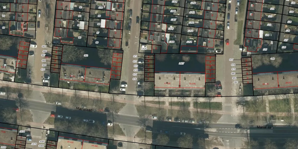 Het perceel waarop Andreasstraat 45 staat heeft een oppervlakte van 19 m². Dit is een klein perceel. De perceeloppervlakte wordt geregistreerd door het Kadaster. Gedetailleerde informatie over de maten van dit perceel kunt u vinden in het rapport Kadastrale kaart met maatvoering van Andreasstraat 45.