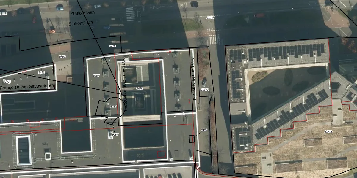 Het perceel waarop Anna van Lotharingentoren 14 staat heeft een oppervlakte van 1792 m². Dit is een zeer groot perceel. De perceeloppervlakte wordt geregistreerd door het Kadaster. Gedetailleerde informatie over de maten van dit perceel kunt u vinden in het rapport Kadastrale kaart met maatvoering van Anna van Lotharingentoren 14.