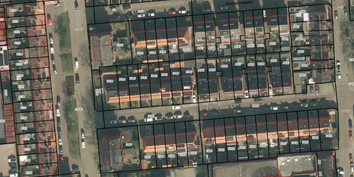 Antiloopstraat 13 is gelegen op kadastraal perceel BDA00D7044. Deze kadastrale aanduiding is uniek en wordt gebruikt door het Kadaster om eigendomsrechten en andere zakelijke rechten vast te leggen. Het perceel maakt onderdeel uit van de kadastrale gemeente Breda.