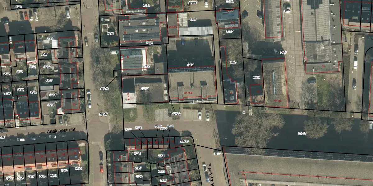 Antiloopstraat 43-A is gelegen op kadastraal perceel BDA00D8323. Deze kadastrale aanduiding is uniek en wordt gebruikt door het Kadaster om eigendomsrechten en andere zakelijke rechten vast te leggen. Het perceel maakt onderdeel uit van de kadastrale gemeente Breda.