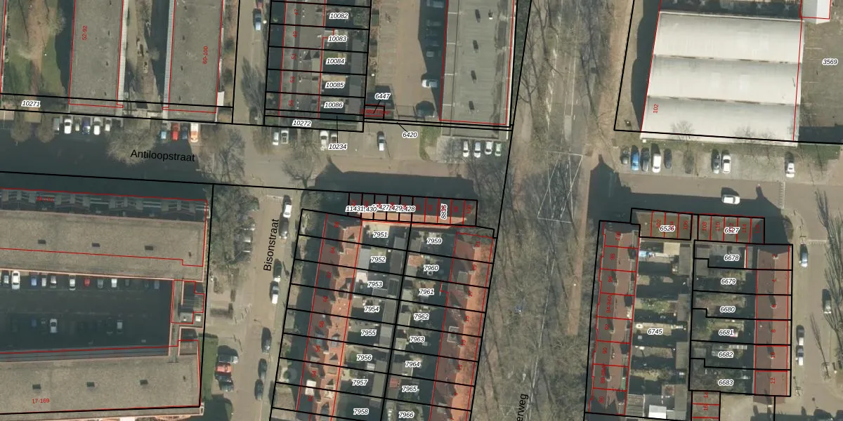 Het perceel waarop Antiloopstraat 92 staat heeft een oppervlakte van 95 m². Dit is een klein perceel. De perceeloppervlakte wordt geregistreerd door het Kadaster. Gedetailleerde informatie over de maten van dit perceel kunt u vinden in het rapport Kadastrale kaart met maatvoering van Antiloopstraat 92.