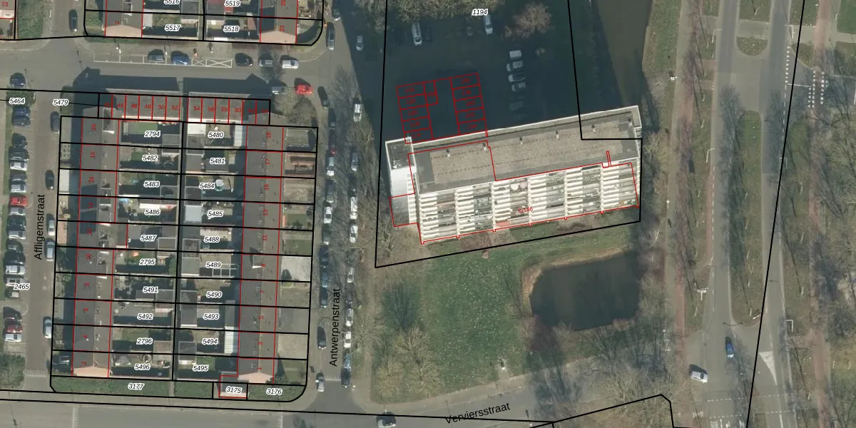 Het perceel waarop Antwerpenstraat 108 staat heeft een oppervlakte van 3534 m². Dit is een zeer groot perceel. De perceeloppervlakte wordt geregistreerd door het Kadaster. Gedetailleerde informatie over de maten van dit perceel kunt u vinden in het rapport Kadastrale kaart met maatvoering van Antwerpenstraat 108.